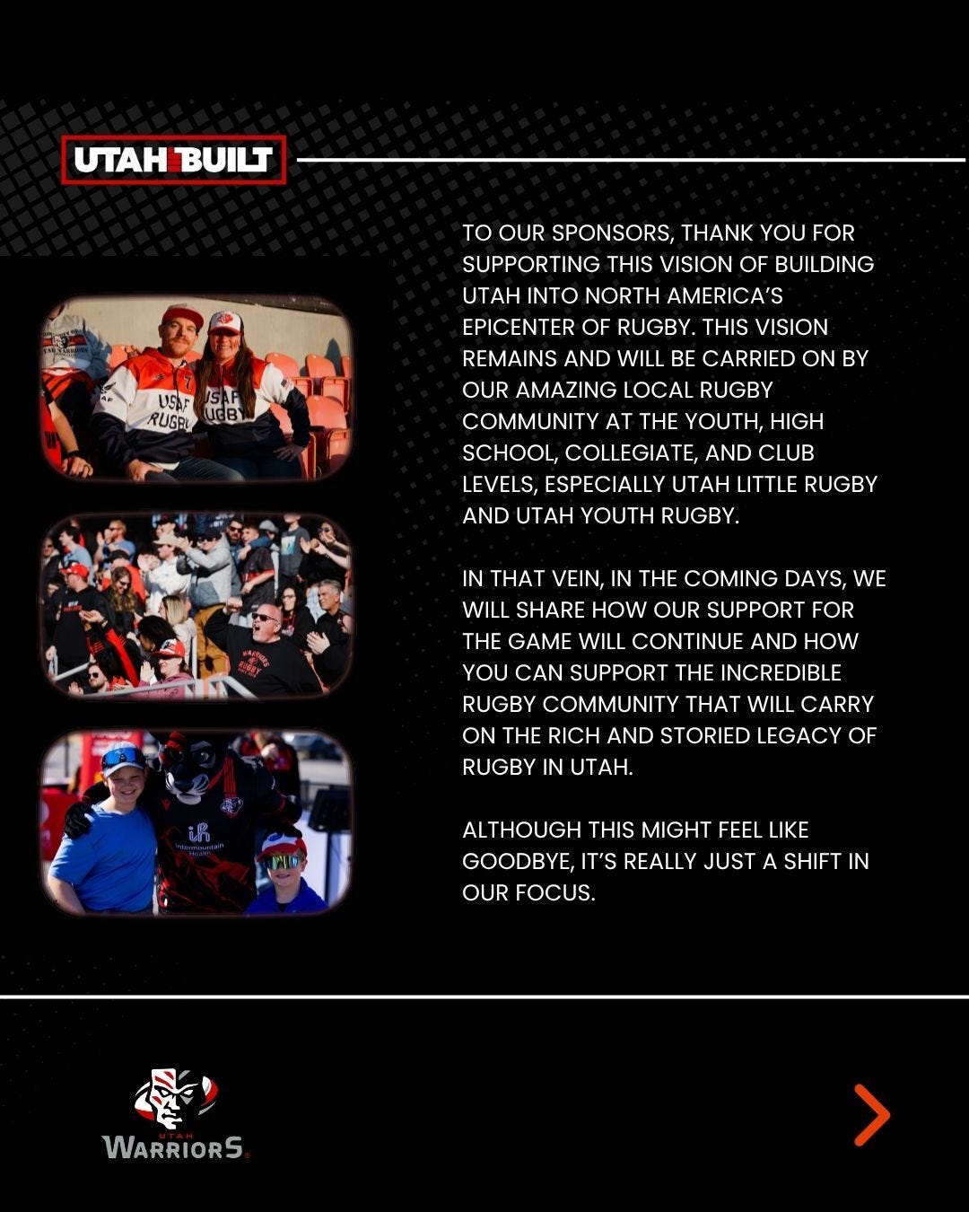 In that vein, in the coming days, we will share how our support for the game will continue and how you can support the incredible rugby community that will carry on the rich and storied legacy of rugby in Utah.